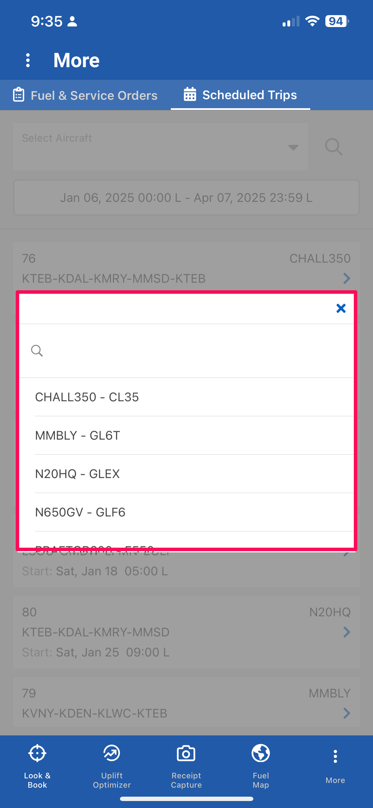 FuelerLinx USER GUIDE - How to Search by Tail within Scheduled Trips in Mobile 3.0
